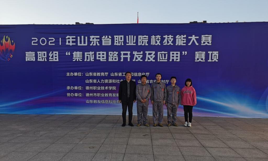 本站讯(通讯员 赵静)11月23日,山东省职业院校技能大赛(高职组)“集成电路开发及应用”赛项在德州职业技术学院举行,来自全省20支队伍参赛。经过激烈角逐,电子电气工程学院蔡涌泉、汤华涛、皇甫列增等三位同学组成的代表队荣获一等奖。