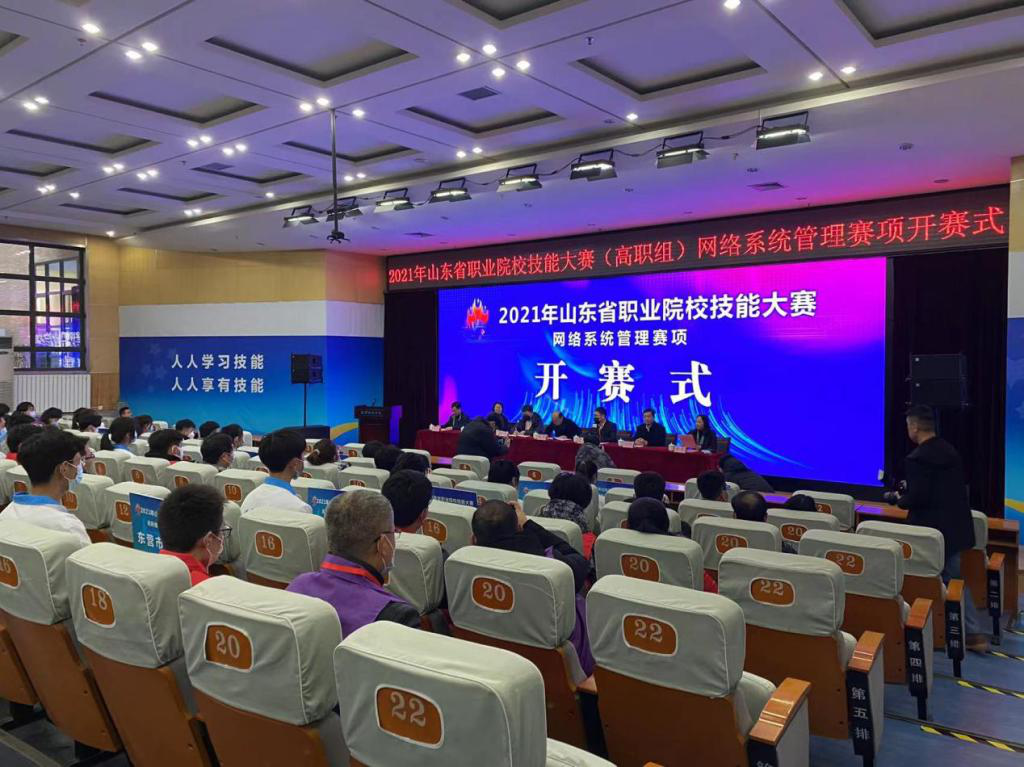 本站讯(通讯员 查欣)12月1日下午,2021年山东省职业院校技能大赛高职组网络系统管理赛项在申搏开赛。淄博市教育局党组成员、四级调研员张荣国出席开赛式并宣布大赛开赛,淄博市教育局职教科副科长王程参加,申搏党委副书记、校长杨百梅致欢迎辞,院党委委员、副校长高霞主持开赛式。