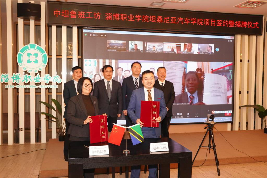 本站讯(通讯员 周涛)2月16日下午,中坦鲁班工坊和淄博职业学院坦桑尼亚汽车学院项目签约及揭牌仪式以线上线下结合方式成功举行。坦桑尼亚教育、科学和技术部职业教育司司长诺艾尔·姆邦德,坦桑尼亚国家交通学院校长扎卡里亚·姆加尼尔瓦,省外办非洲处处长李红线上参会,省教育厅国际处处长王夫海,创造太阳乌干达石油学院副校长段晓飞,淄博市外办党组书记路玉田,申搏党委副书记、校长杨百梅,党委副书记姜义林及汽车工程学院和国际学院相关人员出席线下会议。
