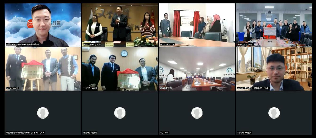 本站讯(通讯员 荆文静)11月30日下午,中巴淄博职业学院海外分院揭牌仪式成功举办。巴基斯坦旁遮普技术教育和职业培训局总干事劳·拉希德·阿里,阿托克省立技术学院院长阿尔斯兰·阿里,唐风国际教育集团执行董事王宝旺,我院党委委员、副院长李厚永出席揭牌仪式并致辞。智能制造学院、国际学院负责人及相关工作人员参加活动。