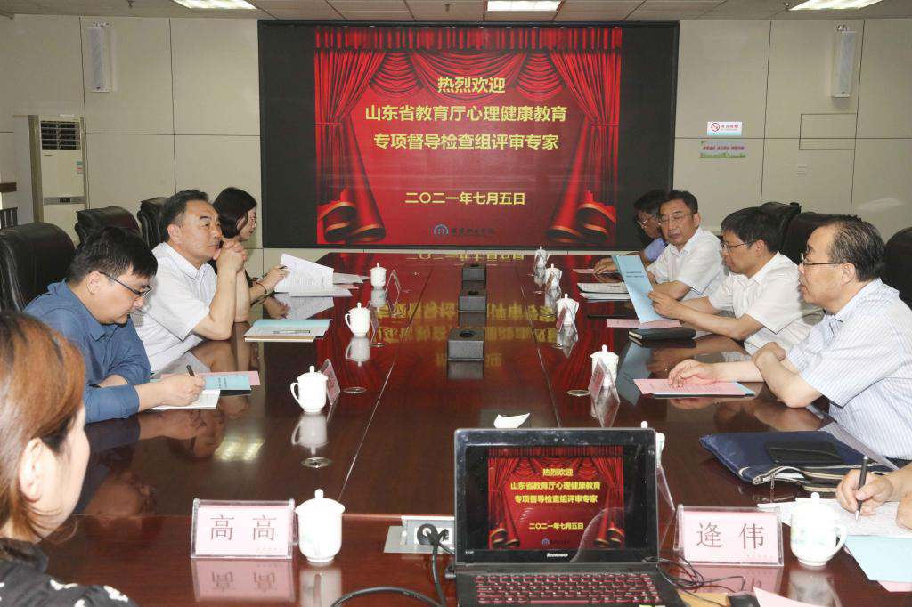 本站讯(通讯员 朱琳琳)7月5日下午,山东省教育厅心理健康教育专项督导检查组在省教育厅机关党委书记、二级巡视员张士瑞带领下,一行6人来我院对心理健康教育工作进行专项督导检查。院党委书记张爱民,党委委员、副院长高爱国及学生工作处负责人、相关工作人员等参加活动。