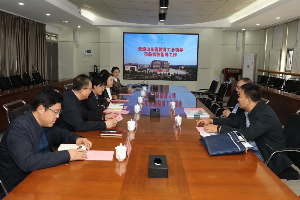 本站讯(通讯员 杜翠翠)11月3日,山东省教育工会“十佳职工信赖的娘家人”考察组来学校就基层工会组织建设及全省教育系统“十佳职工信赖的娘家人”入围对象相关情况进行考察。省教育工会考察组由二级调研员王辉,二级主任科员李健组成,学校党委委员、组织人事处处长朱雯,校工会主席乔华,离退休工作处、工会、工商管理学院、文化旅游系相关负责人参与接待。