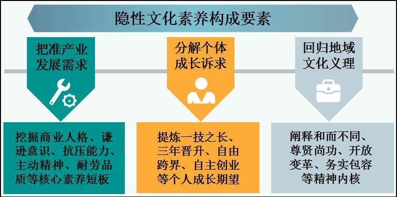 厘清隐性文化素养构成要素。深入行业企业调研,把准产业发展对高素质技术技能人才素养的深层次需求,挖掘商业人格等核心素养短板。对接学生发展规划,分解学生职业生涯发展和个体全面发展诉求,提炼一技之长等个人成长期望。回归地域文化义理,探究关涉现代人格特质生成的传统资源,阐释和而不同等精神内核。在产业发展需求、个体成长诉求和地域文化精髓融合碰撞中,厘清育人层面隐性地域文化素养构成要素。