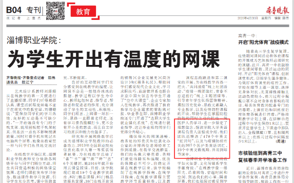 2021年,《高职英语》等线上课程在疫情期间,将中英文“红词句”润融大学英语教学被齐鲁晚报等16家媒体以题为“淄博职业学院:为学生开出有温度的网课”进行报道。2022年4月,再次被淄博日报以题为“淄博职业学院国际学院开启“云上思政”进行报道。国际学院教师党支部书记张银成被学校评为2021年优秀党务工作者。