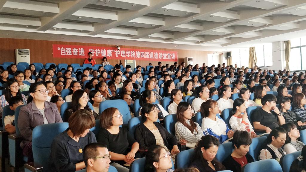 9月28日下午,护理学院在厚德楼学术报告厅举办了主题为“自强奋进、守护健康”的道德讲堂活动,该院部分教职工和学生代表400余人参加。