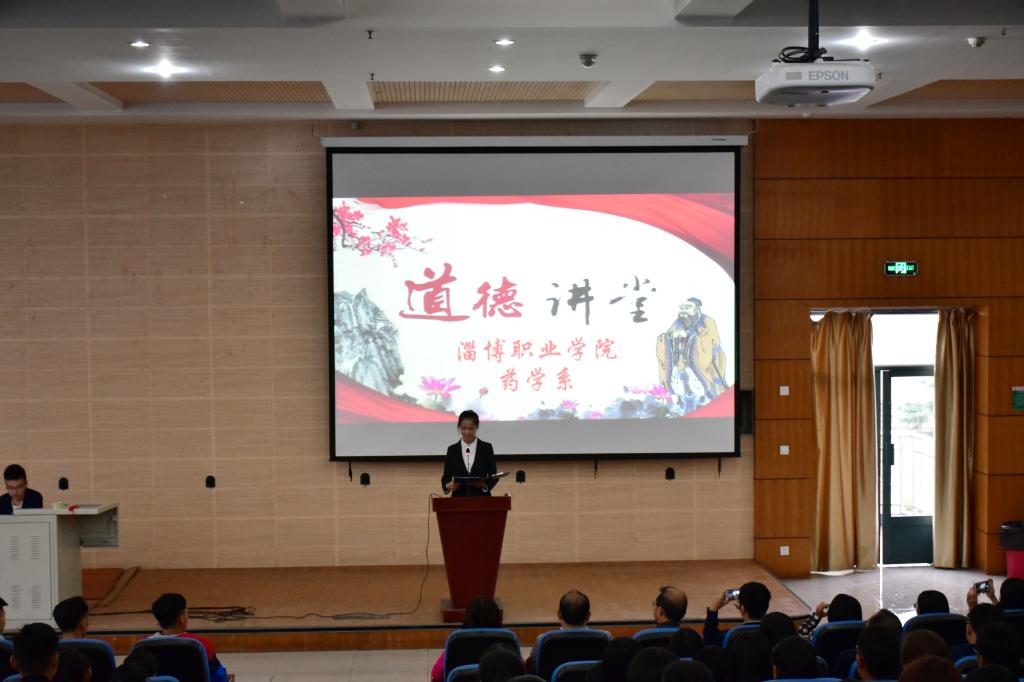 10月10日, 药学系为加强全系学生道德建设工作,提高学生的思想道德水平和文明素质,在西校区报告厅举办“淄博职业学院道德讲堂第十三讲”活动。本次道德讲堂的主题为“讲道德、做好人、树新风”,该系全体教职工及全体在校生参加。