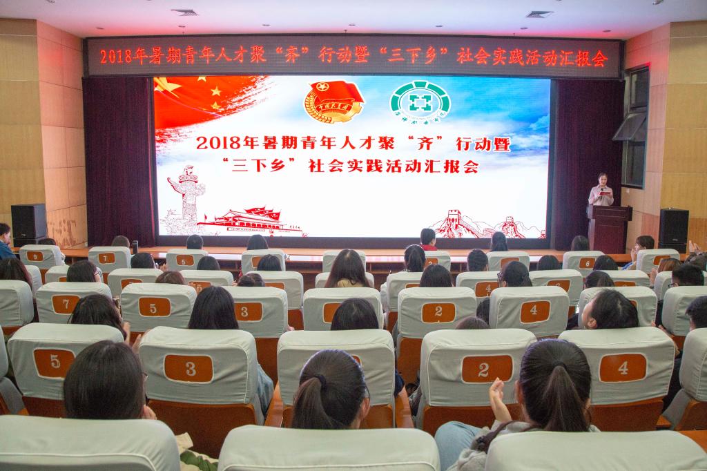 近日,我院在北校区立德楼报告厅举办了2018年暑期青年人才聚“齐”行动暨“三下乡”社会实践活动汇报会,学院团委全体人员、各系院团总支书记、学生代表等500余人参加。