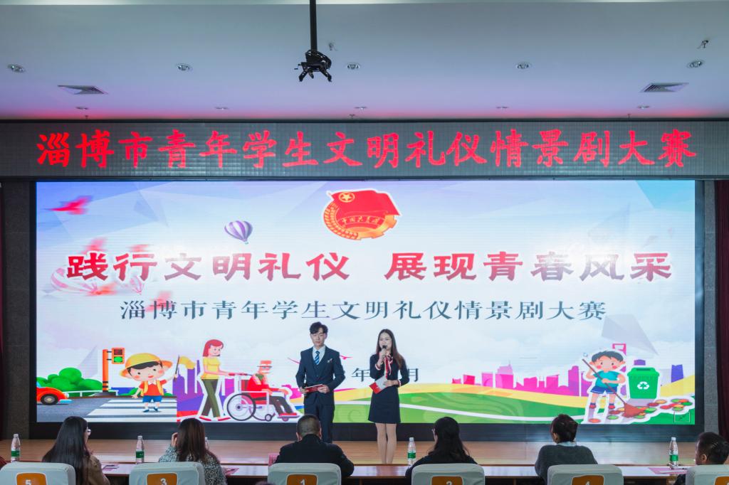 11月2日,淄博市青年学生文明礼仪情景剧大赛在我院北校区报告厅举行,经各区县、高校层层选拔的100余名青年学生参加了本次比赛。团市委副书记李厚永,学院党委委员、工会主席高霞观看比赛并为获奖选手颁奖。