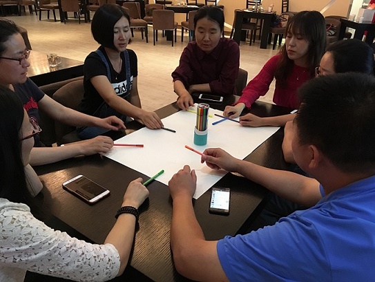 此次心理沙龙特邀全国心理卫生协会大学生心理咨询专业委员会常务理事、山东省高校心理健康教育研究委员会常务副会长、山东大学教授吴少怡主讲,沙龙主题为团体心理辅导的实施与技巧。活动开场,吴教授以“个体期待”为切入点,引导大家畅所欲言,现场气氛顿时活络;理论引导方面,吴教授归纳讲解了经典的人际活动理论,帮助大家形成了系统化认识;活动设计方面,围绕“微笑相识”、“寻找我的小组伙伴”、“组歌大比武”、“进化论”四个主题展开,引导大家从初识、熟悉、组队到共建团队目标、形成团队契约,整个流程是学会人际交往和团队协作的过程;最后,吴教授进行了概括总结,同时参加人员进行了积极反馈,特别是组内成员有很强的情感共鸣。