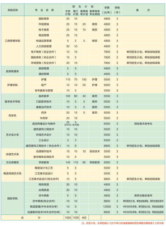 2019年省内夏季高考、春季高考分专业招生计划一览表