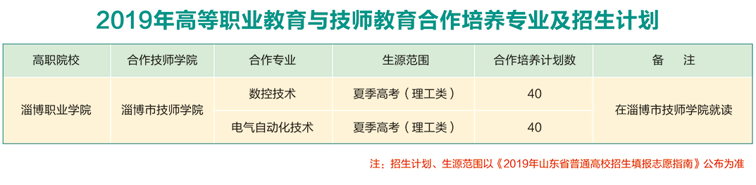 2019年高等职业教育与技师教育合作培养专业及招生计划