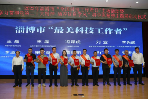 启动仪式上,相关领导为2023年“淄博市最美科技工作者”获得者和提名奖获得者进行了颁奖,申搏电子电气工程学院副院长冯泽虎教授获评“淄博市最美科技工作者”,这是学校教师首次获得此项殊荣。仪式结束后,秦维强等还参观了最美科技工作者工作室。